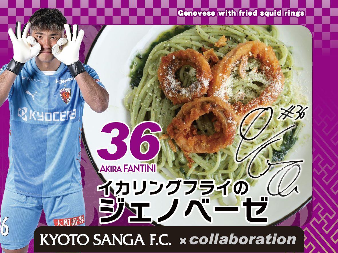 ファンティーニ選手の好物、イタリアンメニューを集結。バジルジェノベーゼにフライしたイカリングを贅沢にトッピングしました!!