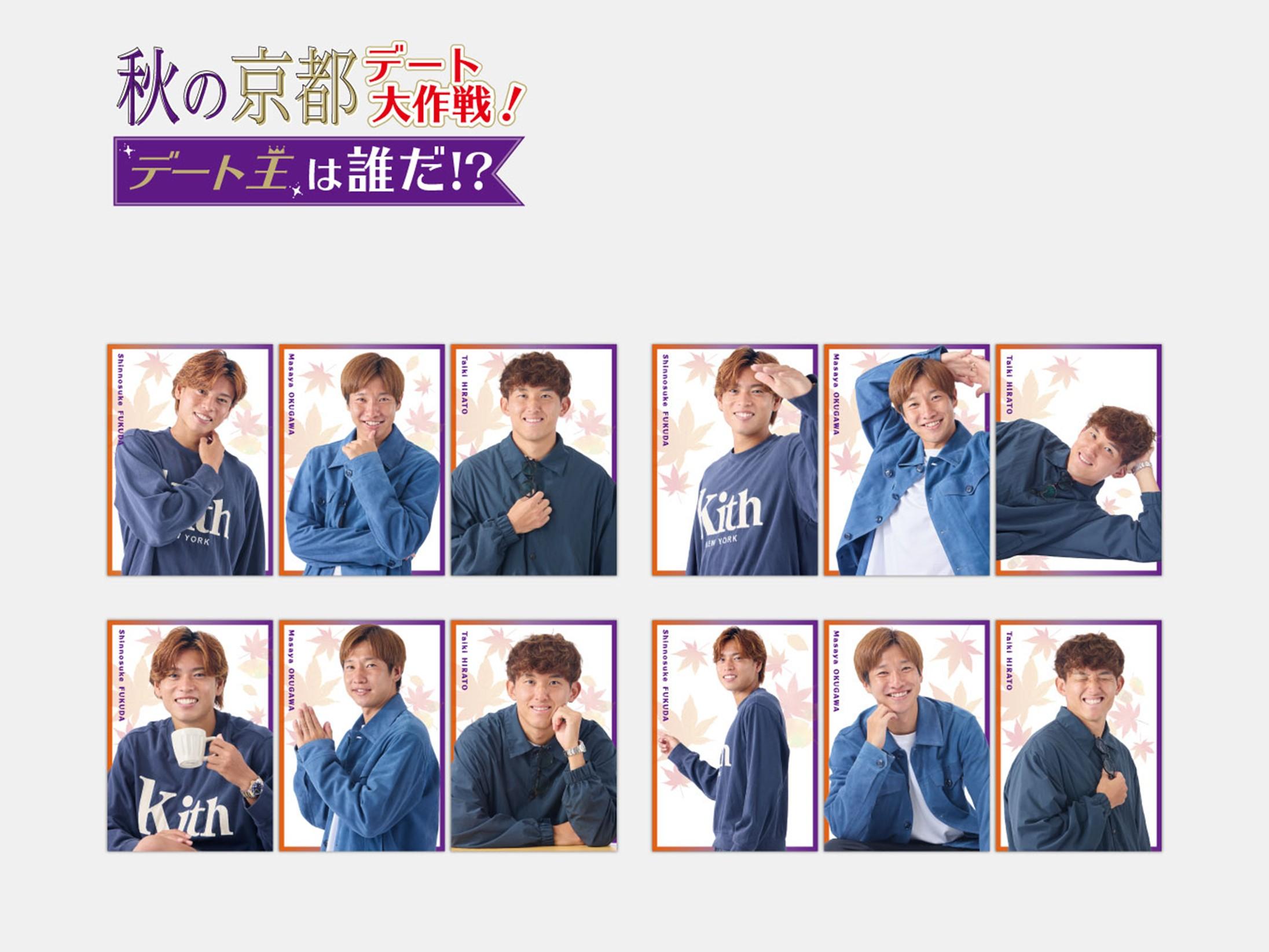大好評の「秋の京都デート大作戦」の選手私服デート姿のオリジナルカードが登場!福田選手・奥川選手・平戸選手の3選手のカードがそれぞれ1枚入ったカードセットです。