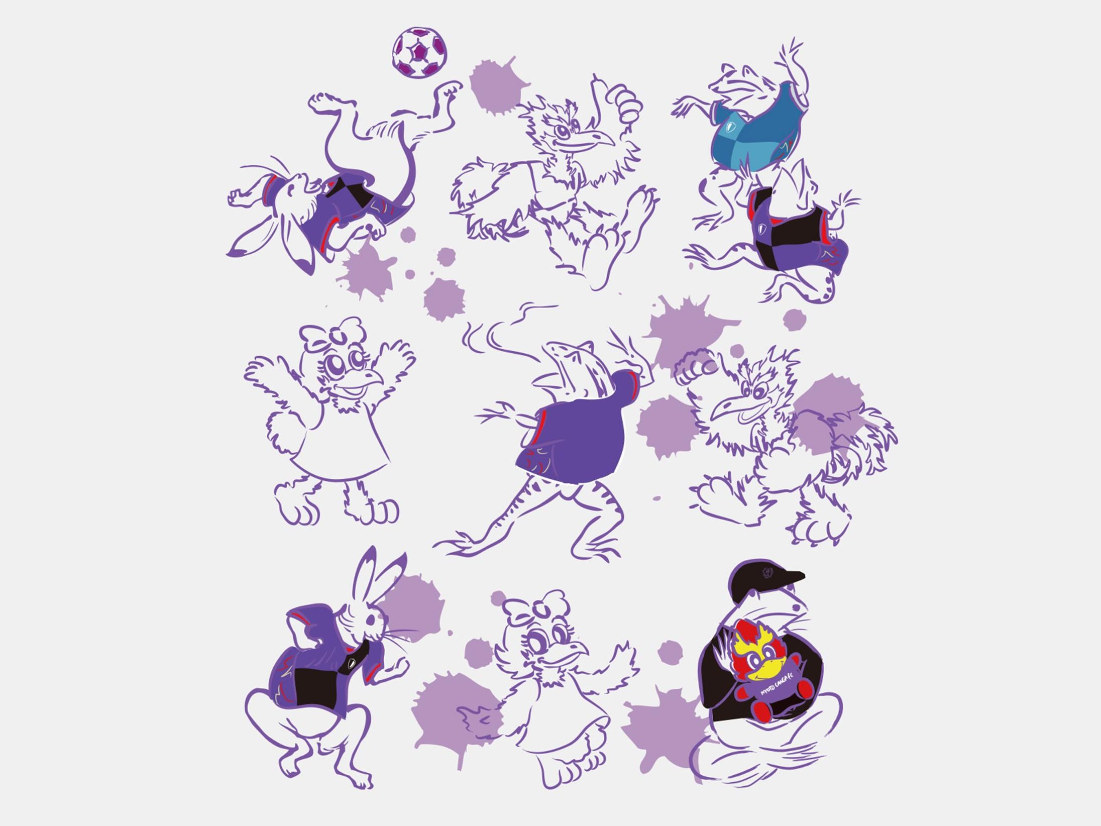 パーサくんとコトノちゃんと一緒にサッカーを楽しむ様子がデザインされています。ユニフォーム姿のウサギとカエルにご注目!