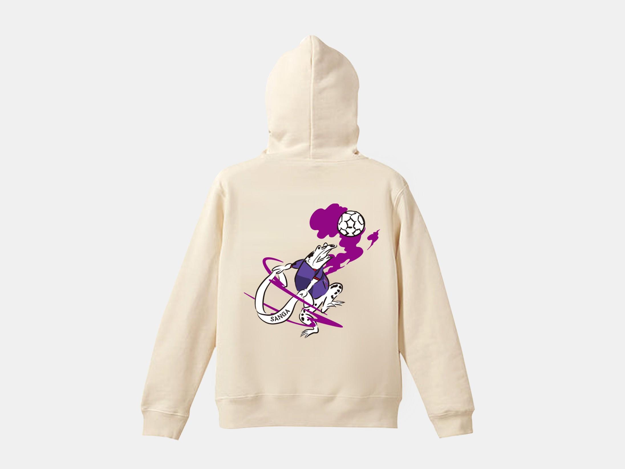 背中にサンガ仕様のカエルを大きくデザインしました。試合日はもちろんのこと、日常でも着回ししやすいデザインです。キッズサイズもあるので、親子コーデもおすすめです!