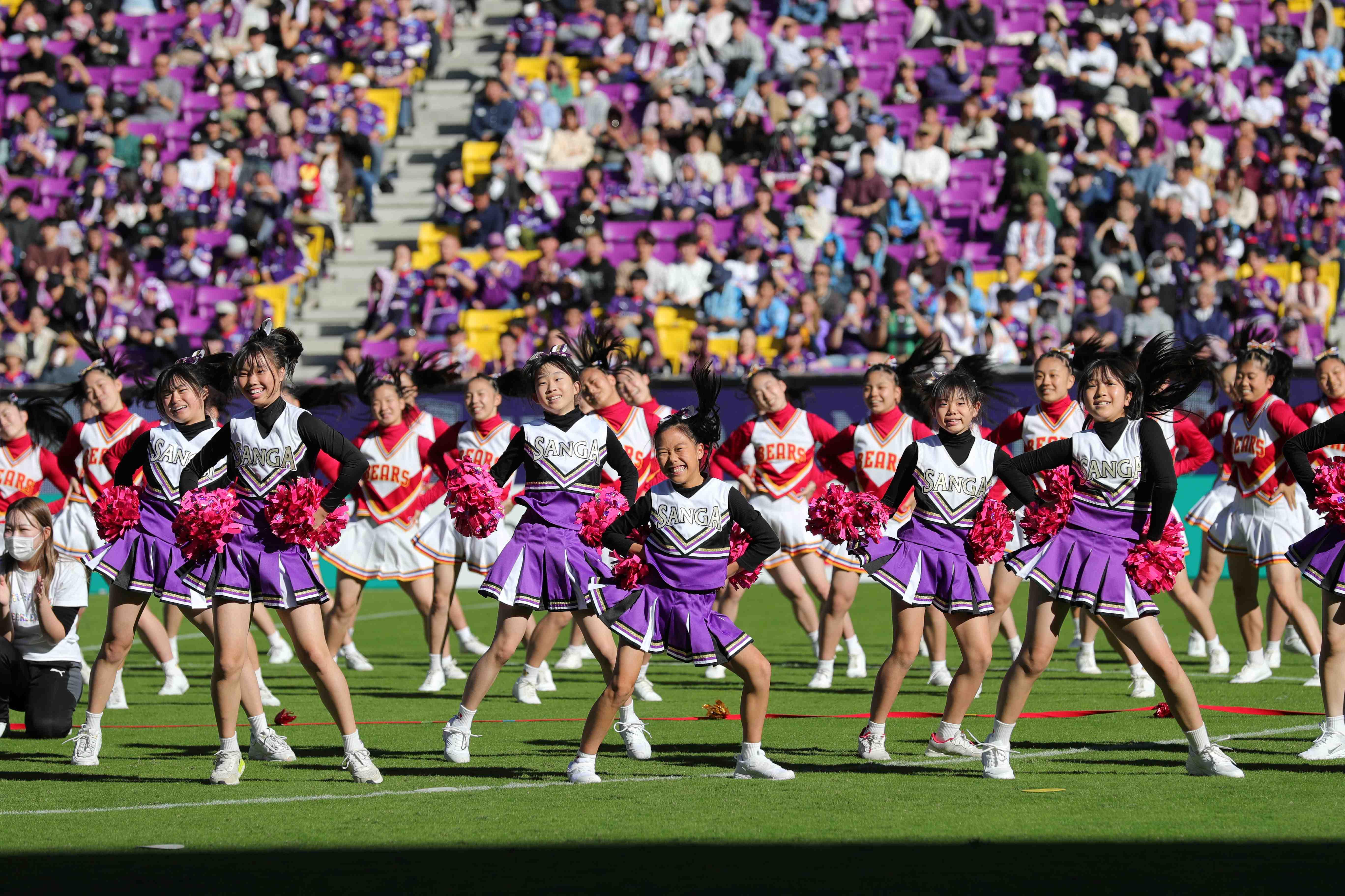 スタジアムで、日本最高峰のチアリーディング、そして、サンガにエールを送るサンガキッズチアにご注目ください。