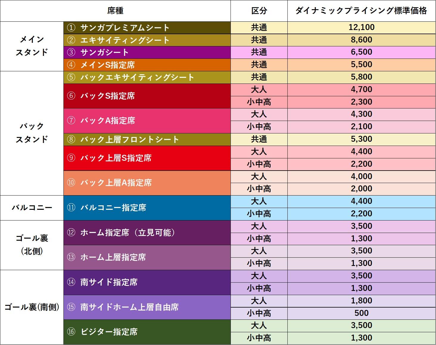 ダイナミックプライシングによるチケット販売においては、ご購入いただくタイミングによって、同じ試合のチケットでも価格が変動する可能性があります。チケットをご購入いただく際にはJリーグチケットで最新価格をご確認の上、お買い求めください。