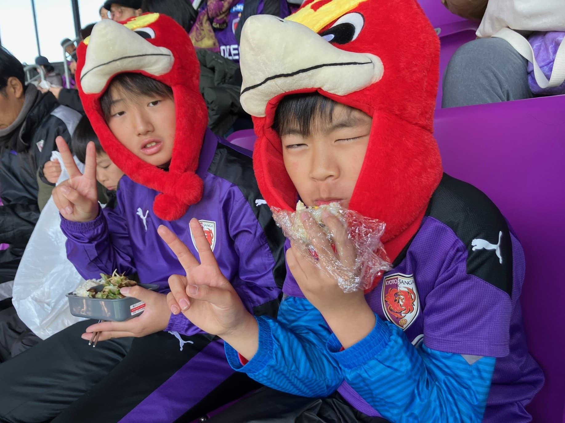試合後のセレモニーでは、曺貴裁監督やキャプテンの福岡慎平選手の言葉に真剣に耳を傾け、努力や継続の大切さ、チームとして挑戦する姿勢について学ぶ貴重な時間となりました。