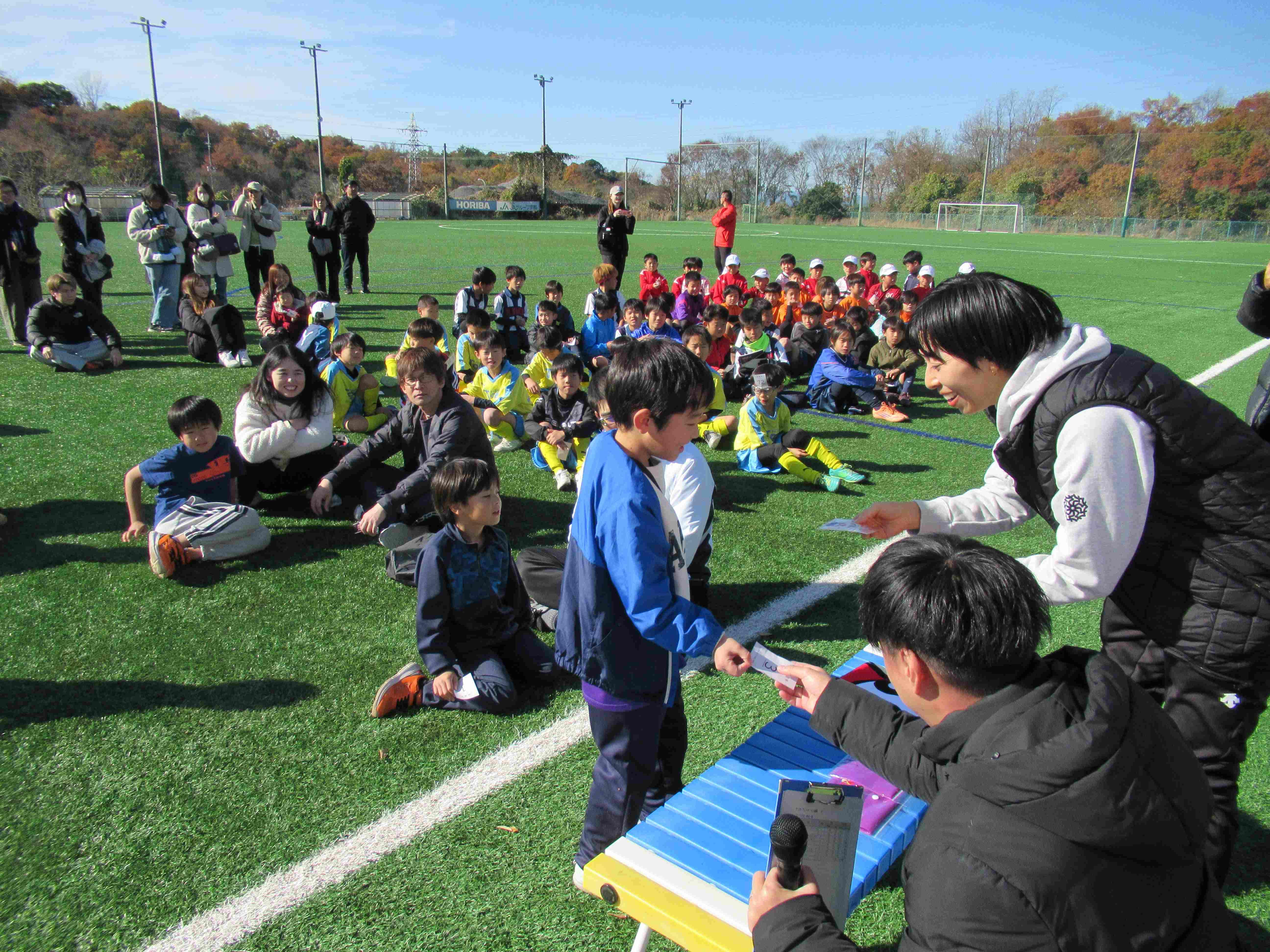 また、親子サッカー教室と小学生交流試合の参加者をにサンガグッズなどが当たる抽選会も行われ、会場は大いに盛り上がりました。