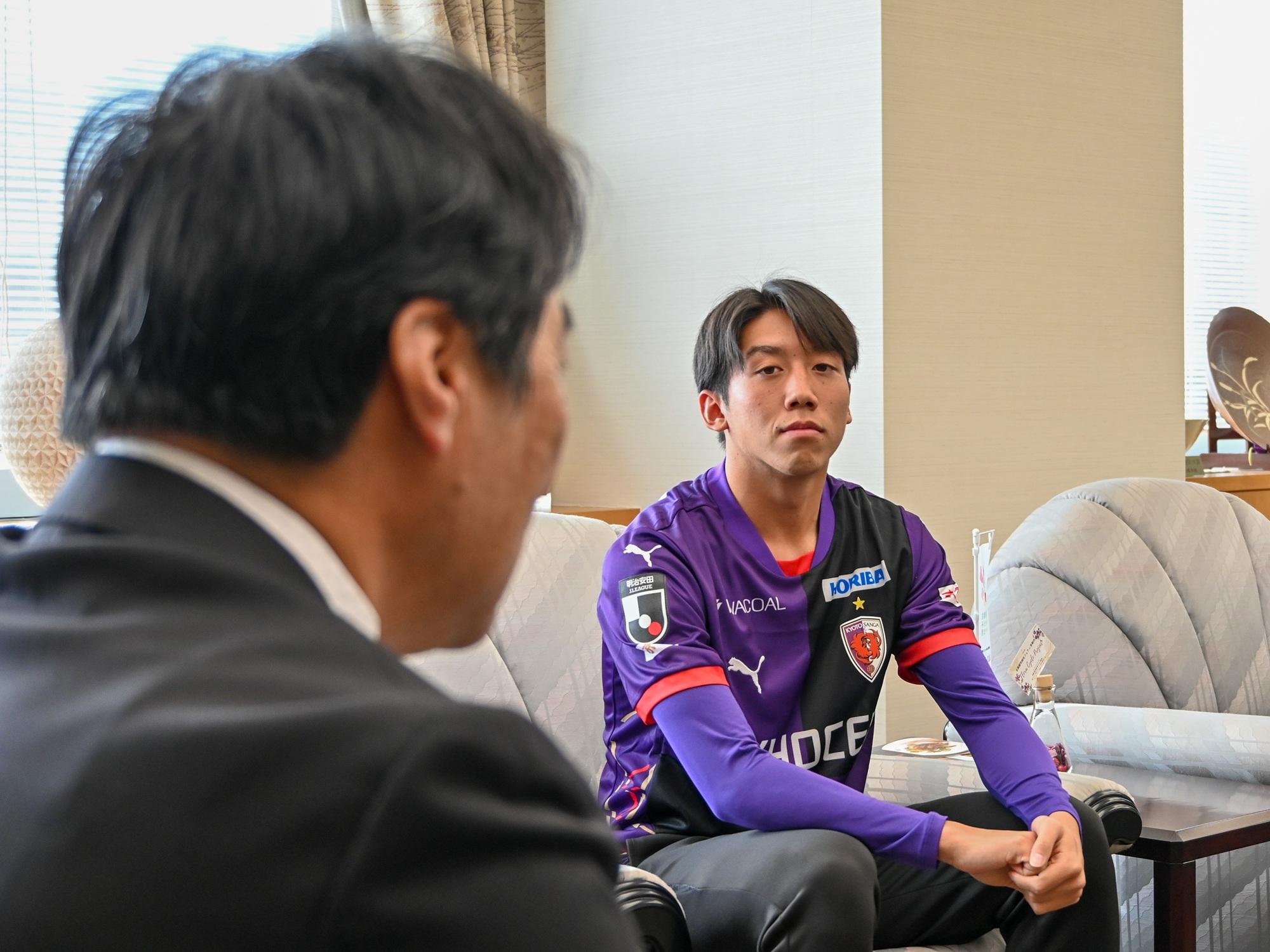 今回の表敬訪問は、亀岡市出身の酒井選手が来シーズンよりトップチームへ昇格することが内定し、地元出身のJリーガーが誕生することとなったことから、実現したものです。