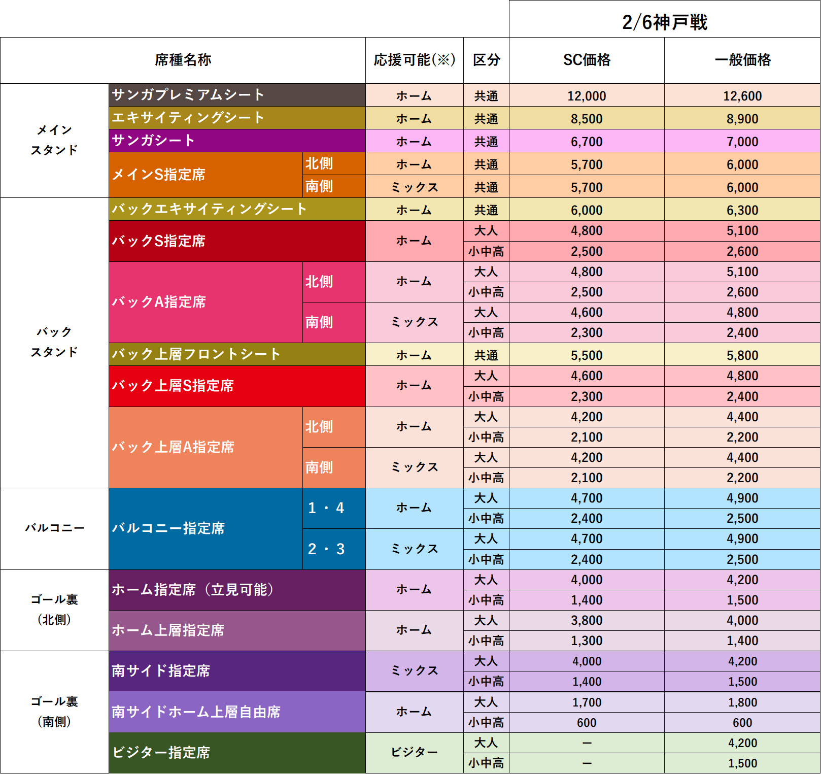 2月6日(金)ヴィッセル神戸戦の初期価格となります。初期価格はSC最速先行販売から適用されます。