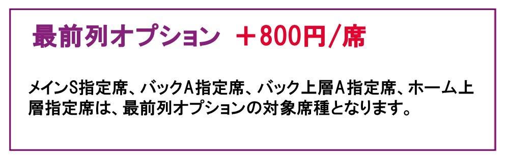 | 最前列 | 対象席種の販売価格に対して「+800円」 |