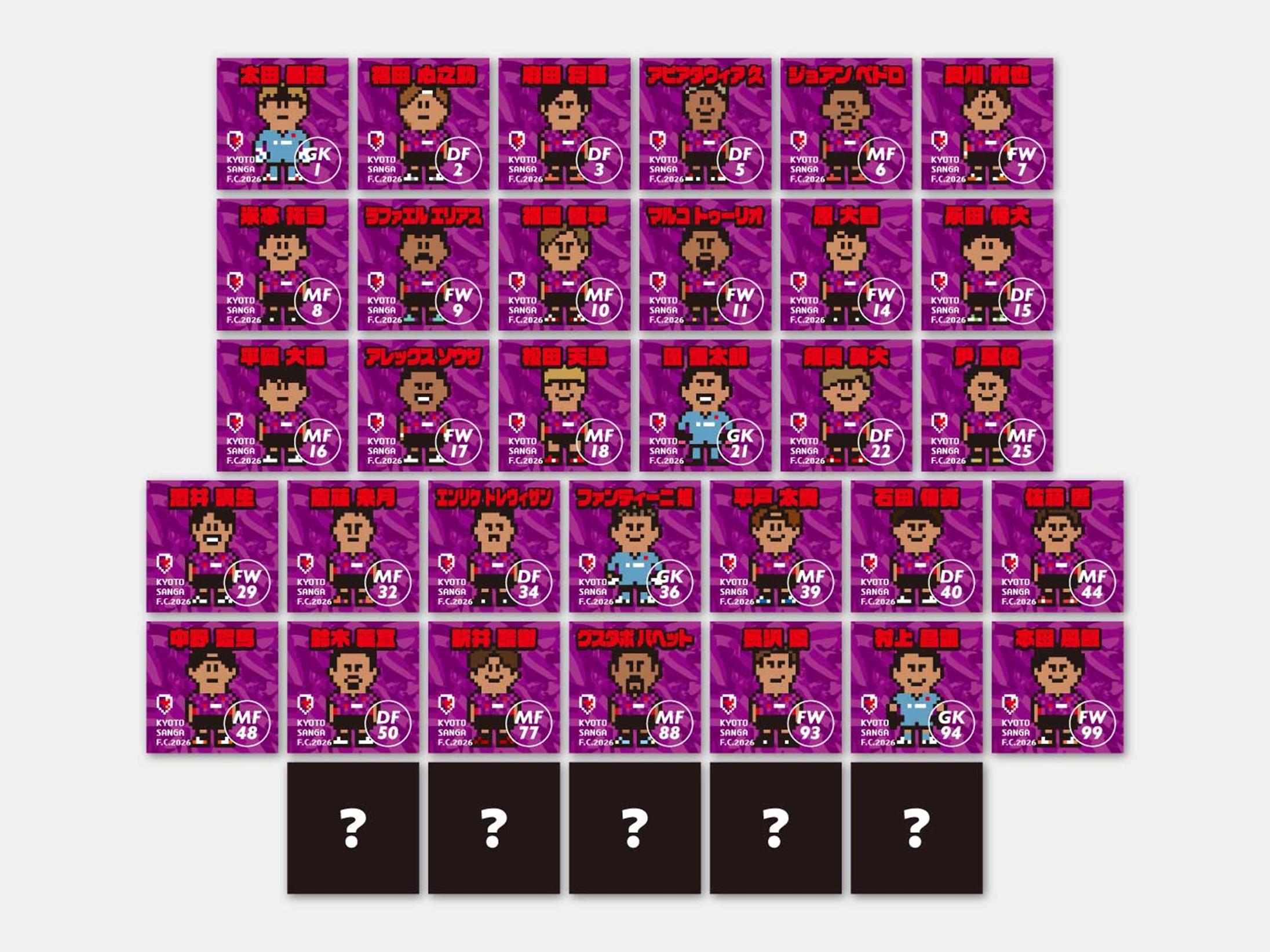 どの選手が出るのかはお楽しみ!全選手のピクセルデザインステッカーに加え、デザイン未公開の特別デザインステッカー5種類、合計37種類。