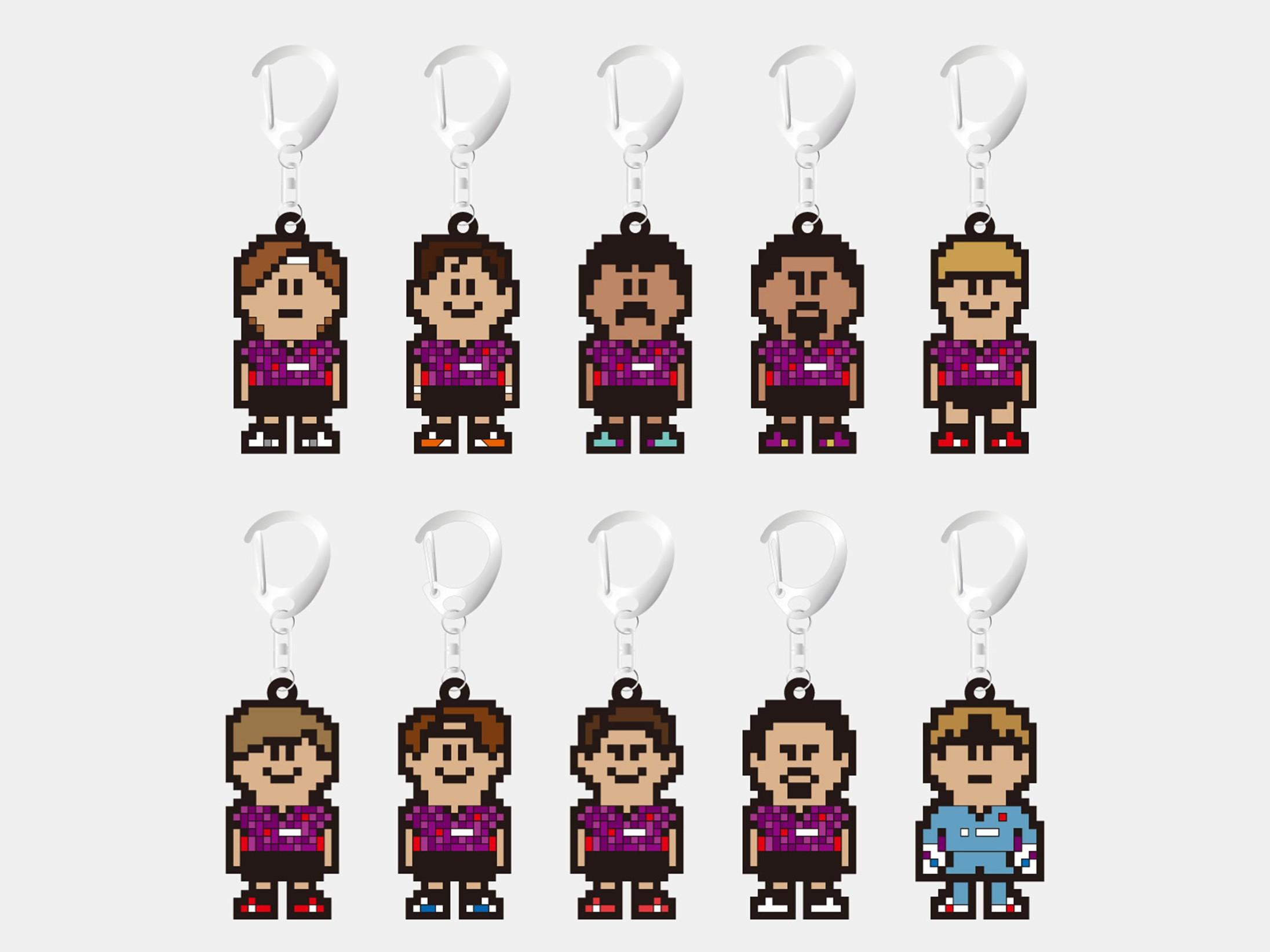 ピクセルデザインの選手ラバーキーホルダーの2026年バージョンです。オリジナルデザインの専用コインを回して、推し選手をGETしてください。