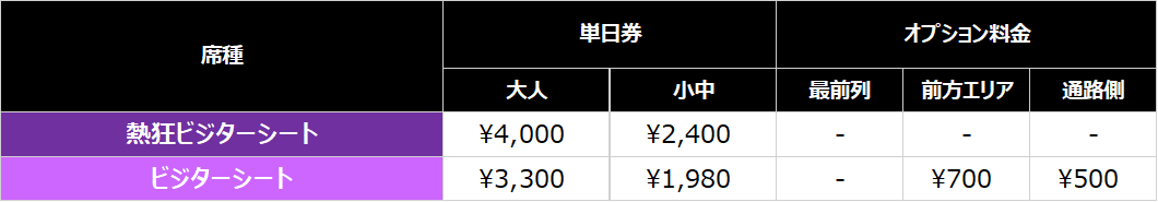 • 熱狂ビジターシート