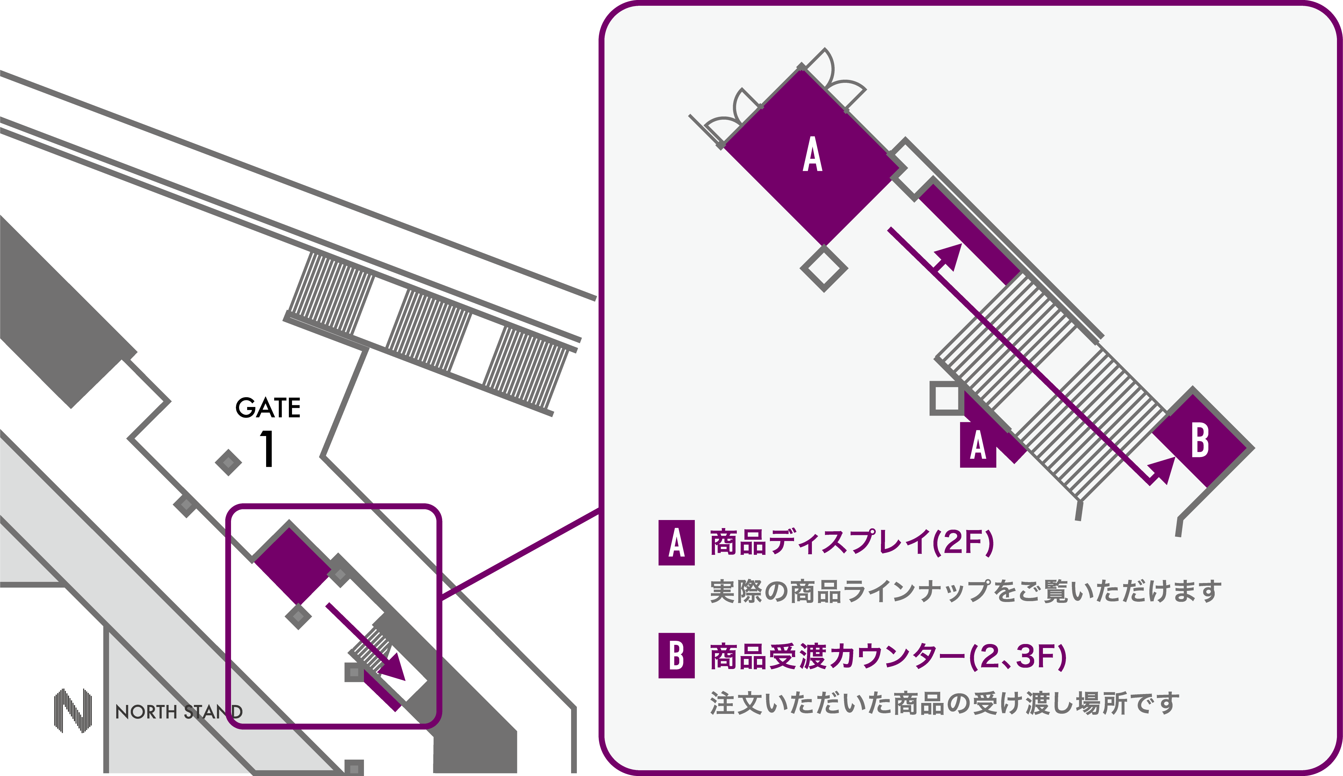 スタジアム内のSANGA LIFE LAB.専用商品受渡カウンター(北コンコースGATE1付近)