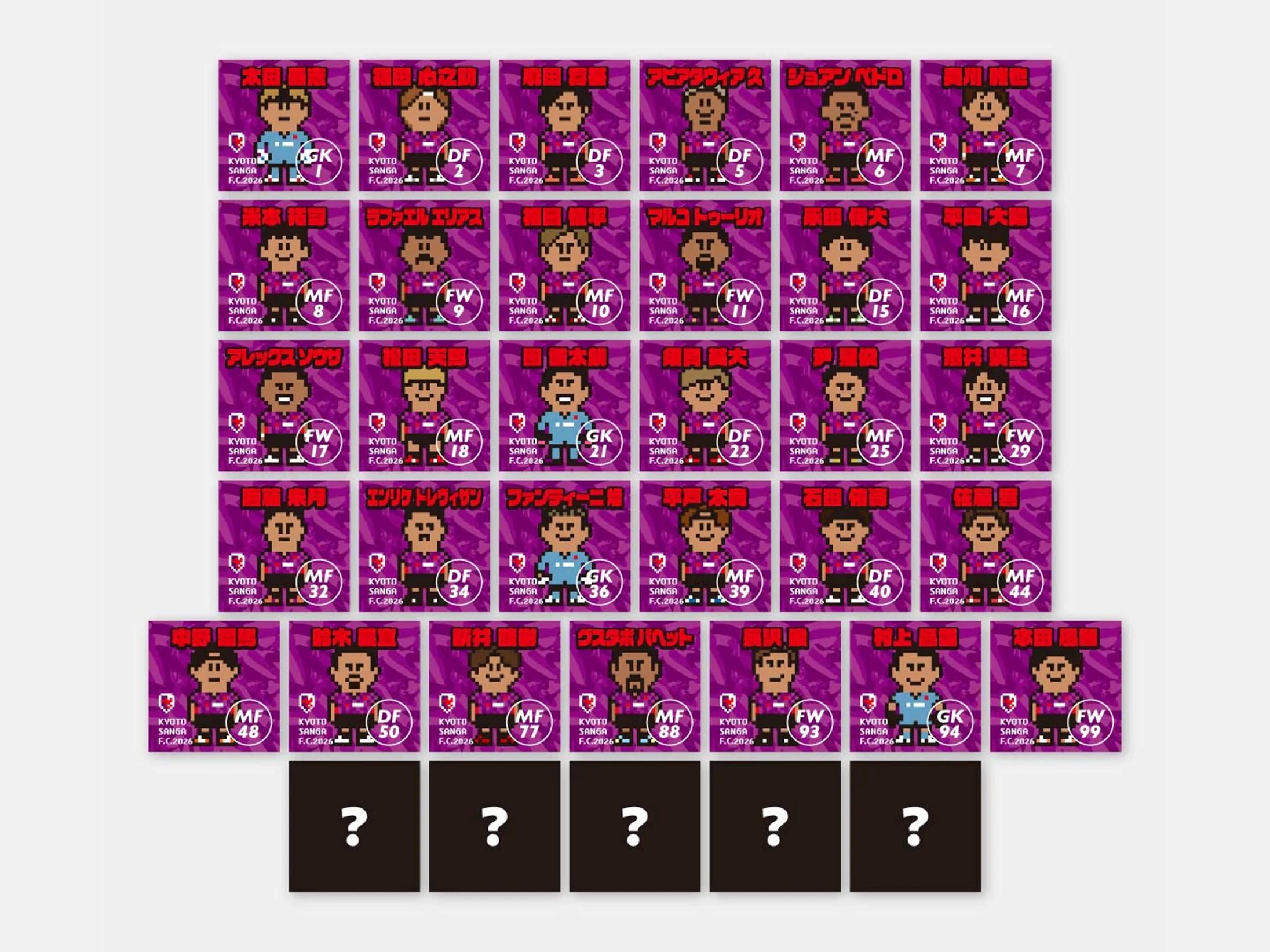 どの選手が出るのかはお楽しみ!全選手のピクセルデザインステッカーに加え、デザイン未公開の特別ステッカー5種類、合計37種類。