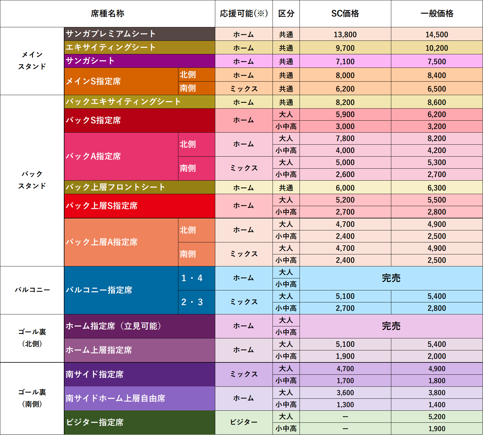 ・ミックス:京都サンガF.C.とビジターチーム、両チームのグッズを身に着けて応援できる席種