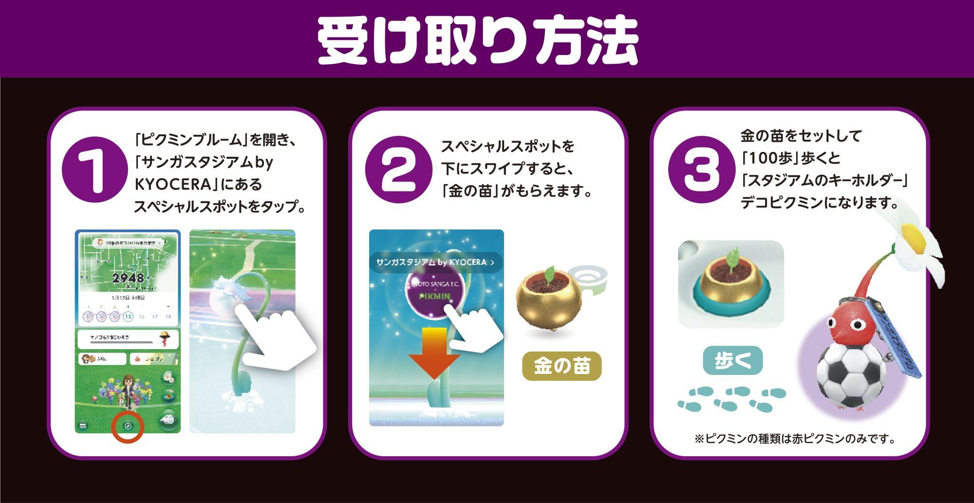 明治安田J1百年構想リーグユニフォームに『ピクミン』が特別にデザインされたことを記念して、2月6日の開幕戦に合わせて、スマートフォン向けアプリ『Pikmin Bloom(ピクミン ブルーム)』のスペシャルスポットが、京都サンガF.C.のホームスタジアムである「サンガスタジアム by KYOCERA」に期間限定で出現します!