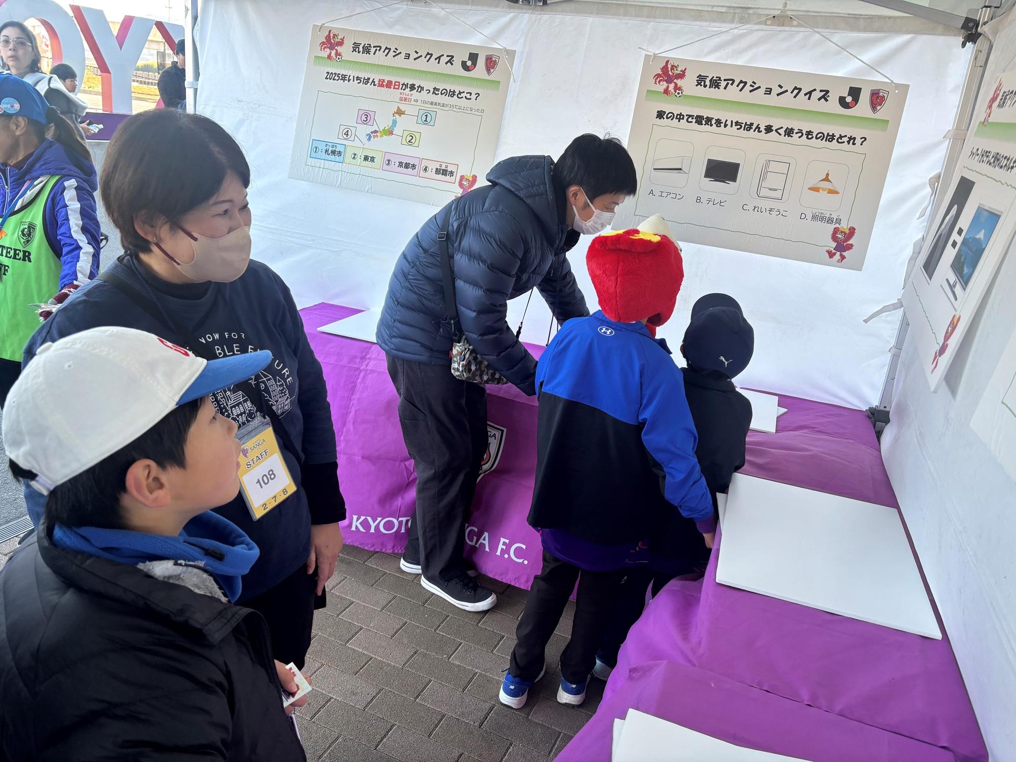 サッカーができる環境や子どもたちの未来を守るため、地球温暖化と私たちの暮らしのつながりを楽しく学び、気候変動問題を自分ごととして考えるきっかけとなるクイズを実施します。