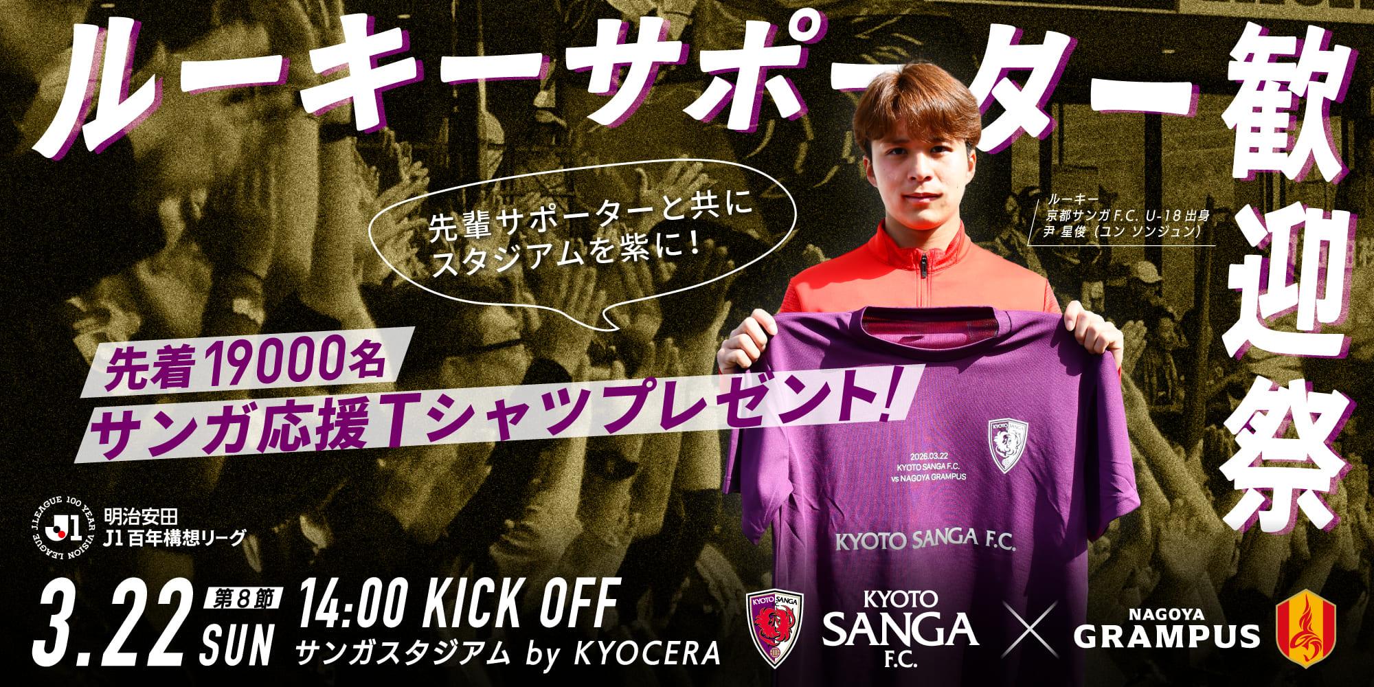 3月22日(日)名古屋グランパス戦におきまして、新しくサンガサポーターになられた方やこれから新しくサポーターの仲間入りする方も試合観戦をお楽しみいただける『ルーキーサポーター歓迎祭!』を開催いたします。
