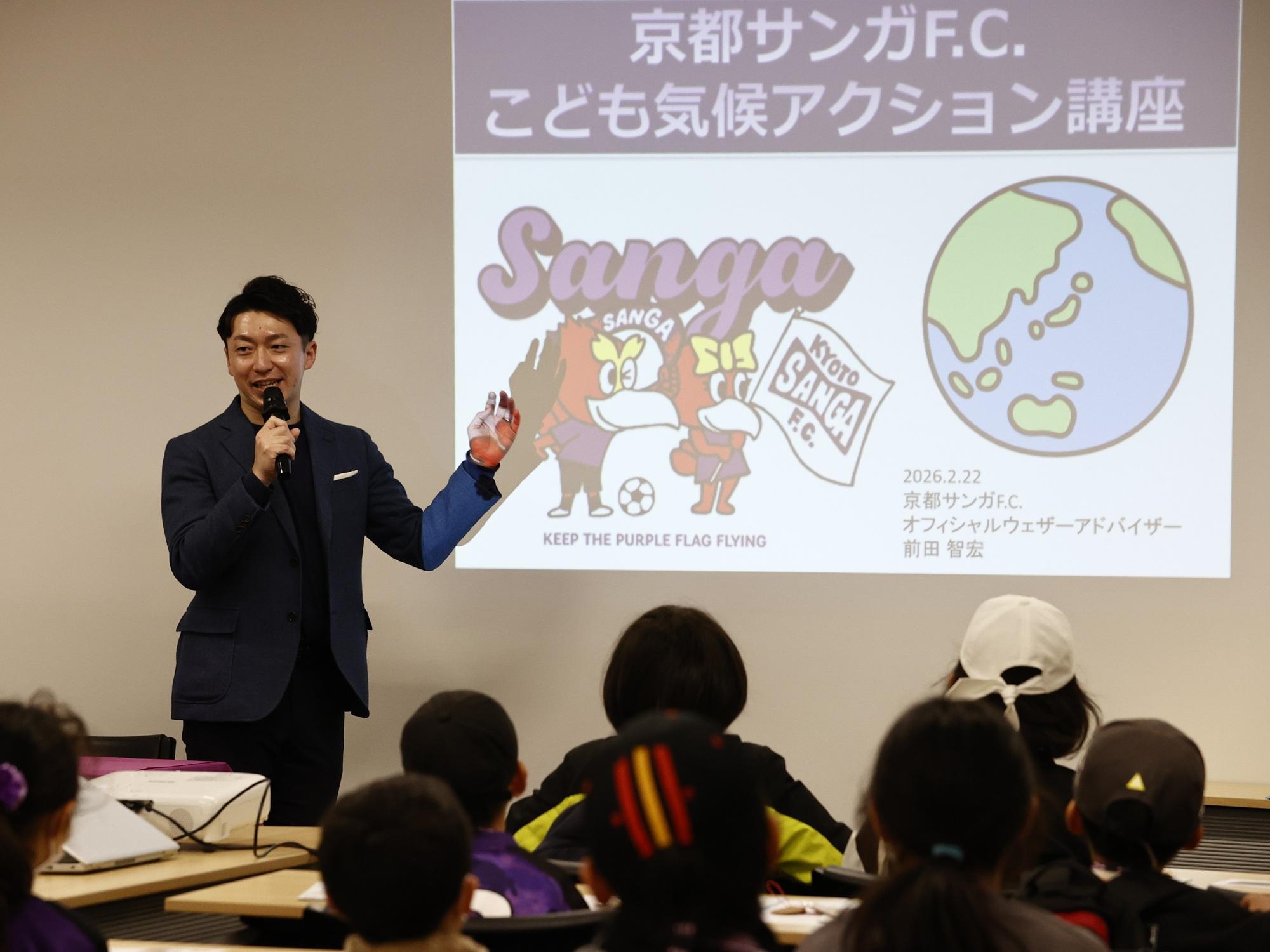 京都サンガF.C.オフィシャルウェザーアドバイザーで気象予報士の前田智宏さんをお迎えし、スタジアム全体で気候変動について考える「気候アクションプログラム」を実施しました。