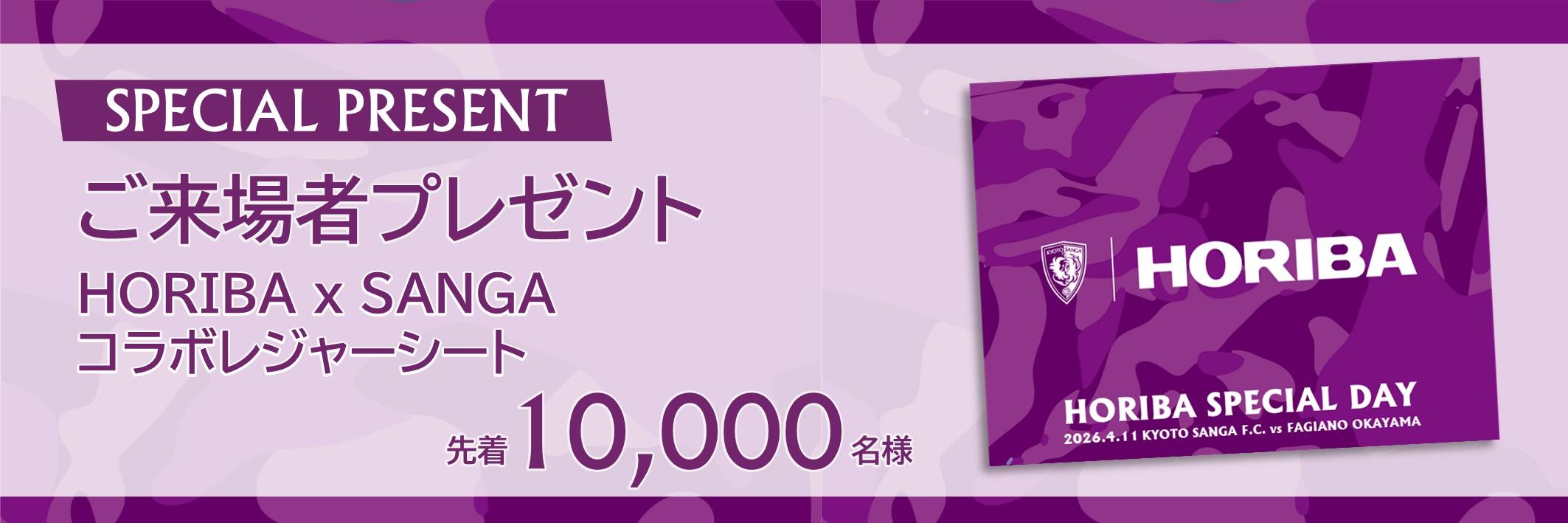 試合当日のご来場者先着10,000名に、入場ゲート(階段5入場口を除く)にて、「HORIBA×SANGAコラボレジャーシート」をプレゼントいたします。
