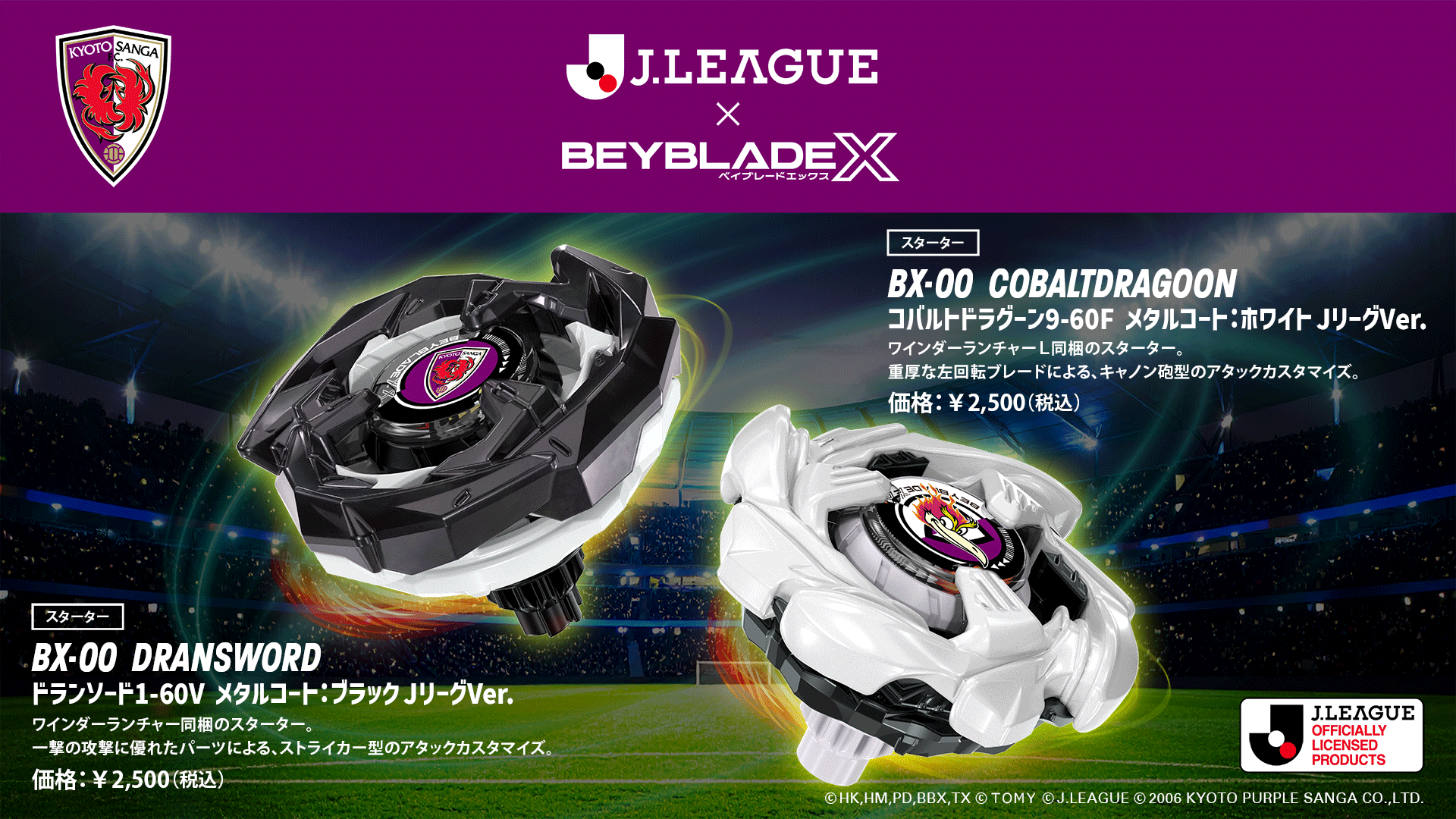 ※ スタジアムグッズショップ及びオフィシャルオンラインショップでの取り扱いは『BX-00ドランソード1-60Vメタルコート:ブラック JリーグVer.』のみとなります。『BX-00コバルトドラグーン9-60Fメタルコート:ホワイト JリーグVer.』はJリーグオンラインストアにてお買い求めください。