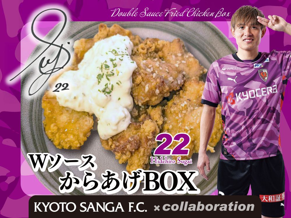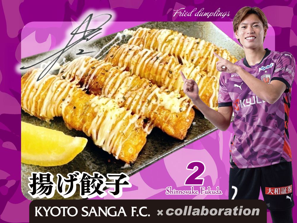 【選手コラボメニュー】福田 心之助 選手メニュー取扱い店。 衣、油、温度…素材の味を引き出す製法にこだわった料理を提供します。最高の「旨い!」を通じてサポーターの皆様と心を一つにして京都サンガF.C.を盛り上げていけるよう多彩のメニューをご用意してお待ちしております!