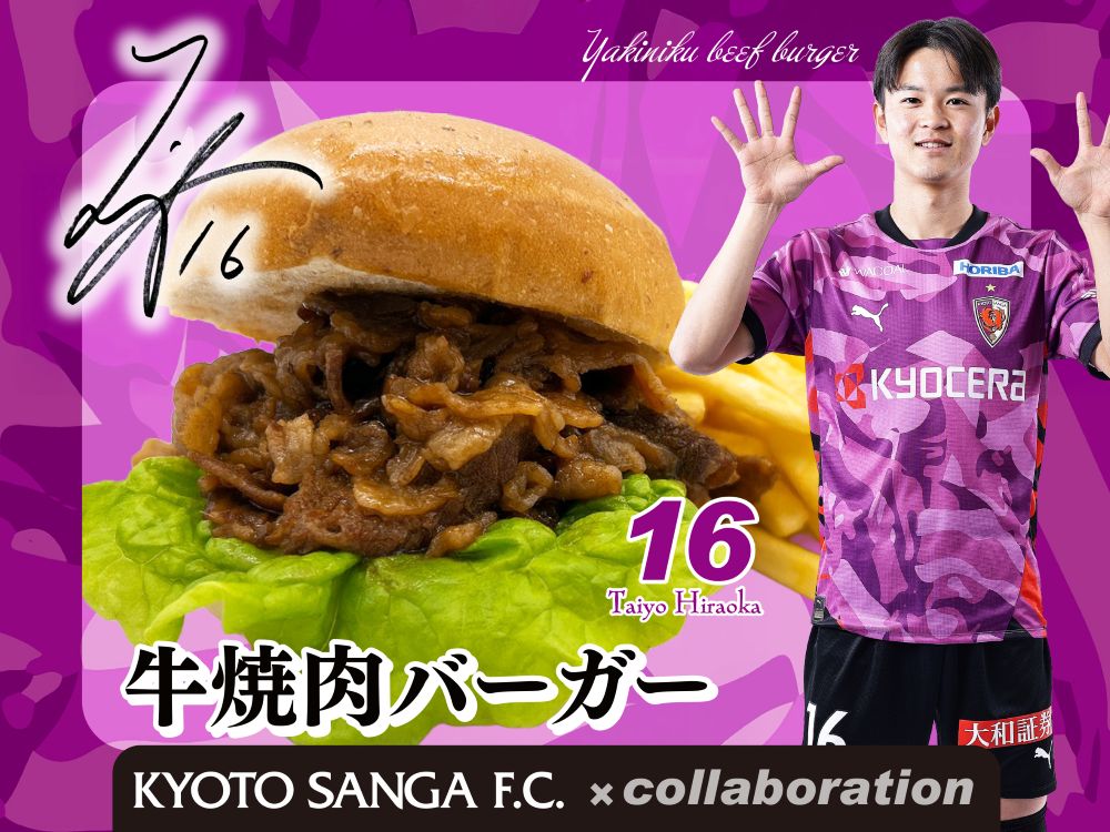 【選手コラボメニュー】平岡 大陽 選手メニュー取扱い店。 ハンバーガーショップBEETでは、拘りのオリジナルバーガーを始め、ポテトなど、スタグルをお楽しみいただけるラインナップをご用意しております‼是非、ご利用ください‼