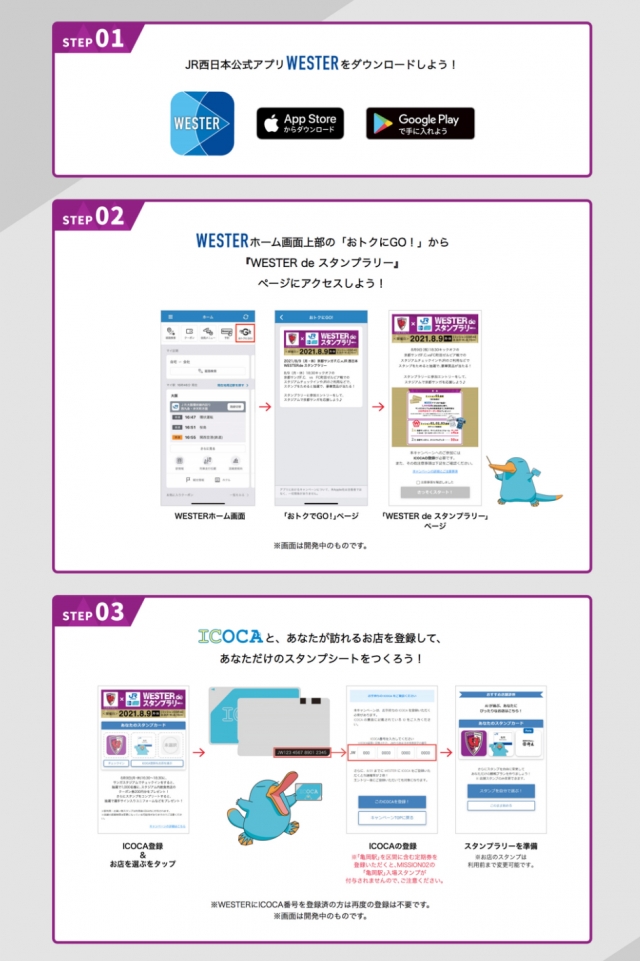 「WESTER」をダウンロードの上、「おトクにGO!」内の本スタンプラリーページ内にICOCA番号の登録などを行い、スタンプラリーに参加!