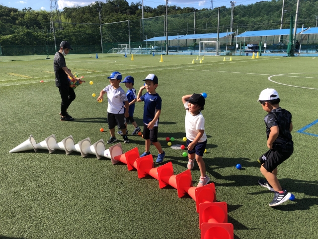 サッカーのトレーニングは行わず、ジュニア期に必要な身体的要素、特に基本的動作スキルを発達させることを目的としたクラスです。基本的動作スキルとは、基礎運動能力や身体操作性とも呼ばれ、自分の身体を操り、様々な運動を巧みにこなす能力のことです。