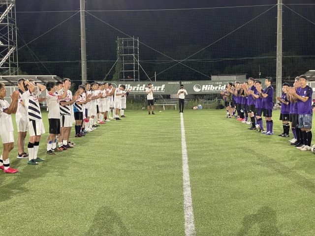 試合終了後、今は新型コロナウイルス感染対策のため握手ができないので、お互いの健闘を拍手で称えあいました。
