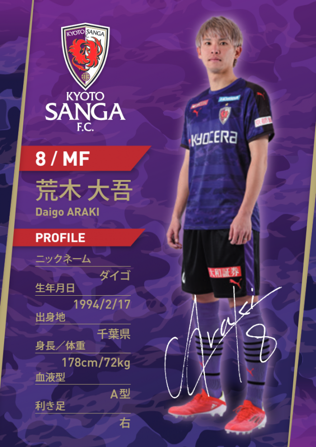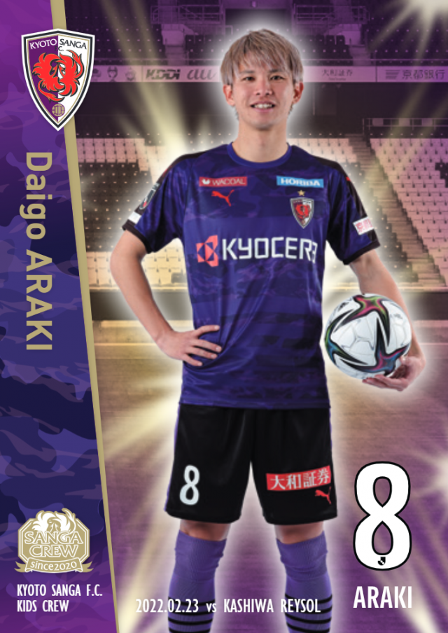 2/23(水・祝)柏戦は、「背番号8/MF/荒木大吾選手」です!