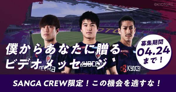 今回もSANGA CREWの皆さま限定で、京都サンガF.C.の選手に、世界で一つのビデオメッセージをリクエストできるキャンペーンを実施いたします。