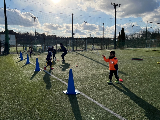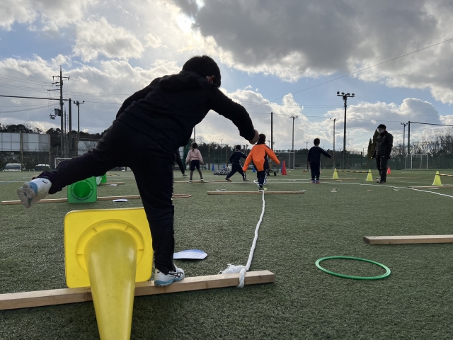 サッカーのトレーニングは行わず、ジュニア期に必要な身体的要素、特に基本的動作スキルを発達させることを目的としたクラスです。基本的動作スキルとは、基礎運動能力や身体操作性とも呼ばれ、自分の身体を操り、様々な運動を巧みにこなす能力のことです。