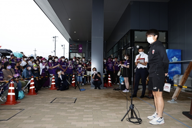 最後にサポーターの皆さんへ感謝の言葉を述べるとともに、満員のスタジアムでともに戦えるよう、ぜひ家族、友人を誘ってスタジアムに来てくださいと呼びかけていました。