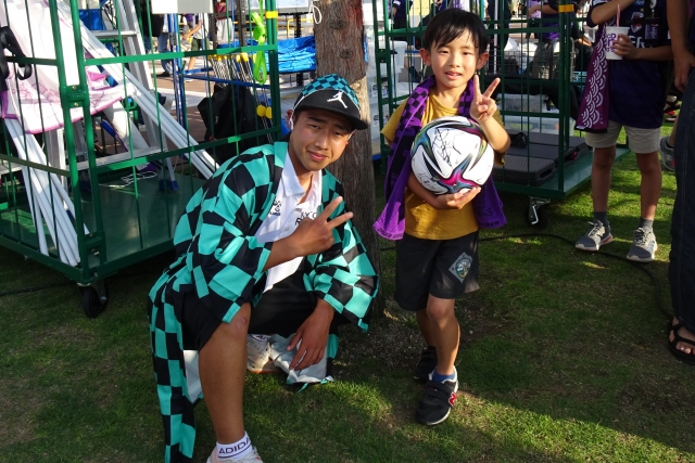 賞品は「曺監督サイン入りサンガ公式戦使用ボール」ということで、両チームのサポーターが奮って参加されました。