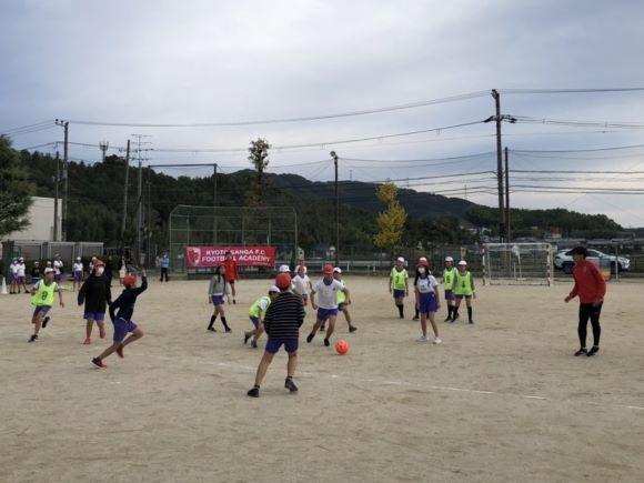 11月16日(木)に福田心之助選手、植田悠太選手とスクールコーチが城陽市立青谷小学校を訪問し、サッカー交流を行いました。