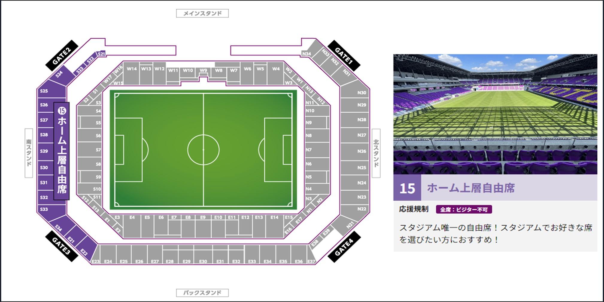 ※ホーム上層自由席はビジターグッズの着用不可エリアです。