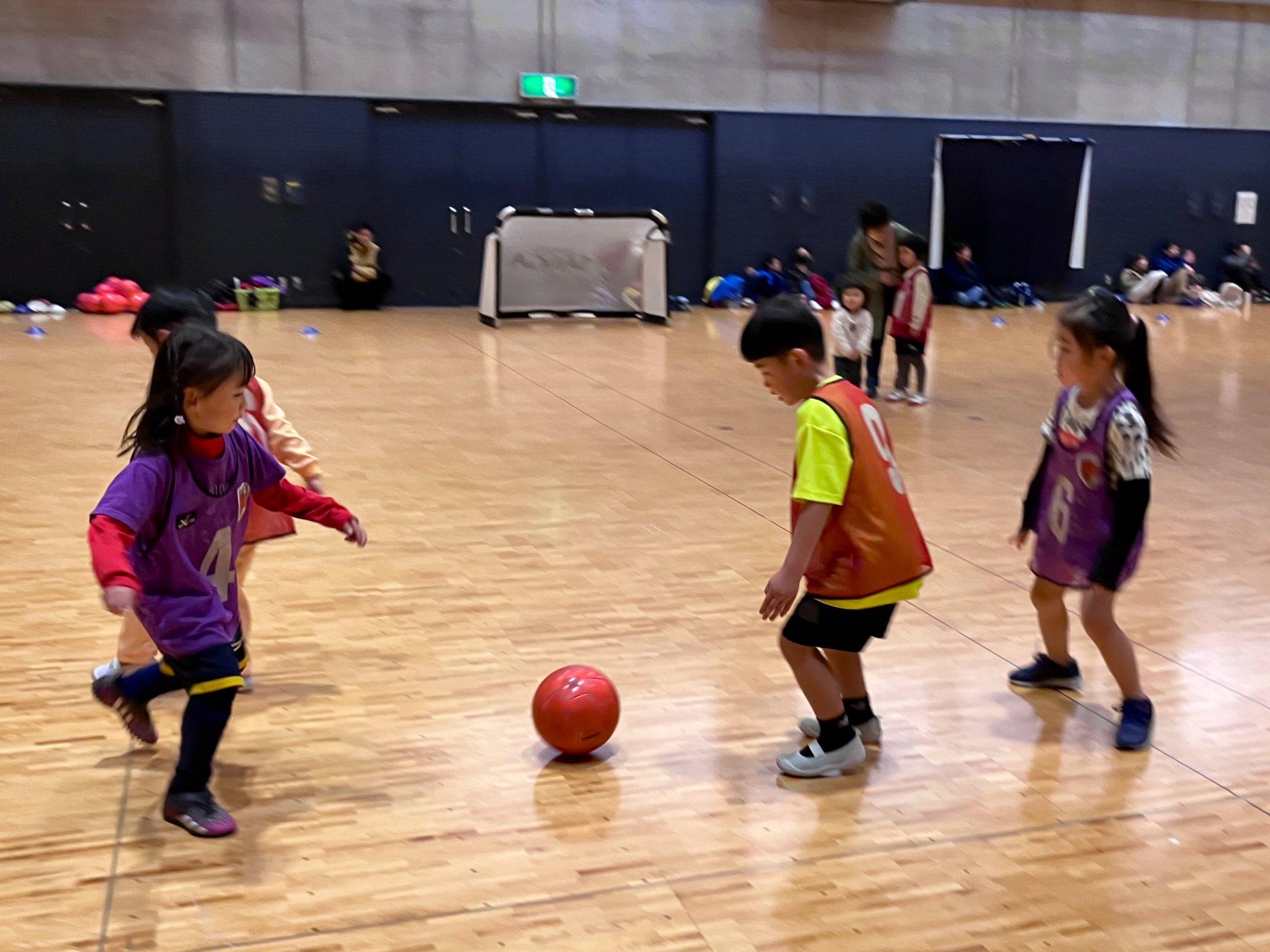 小学生は1vs1や2vs2の勝負を真剣に、年中年長は色々な動きをおり混ぜたシュートを楽しそうに挑戦していました。