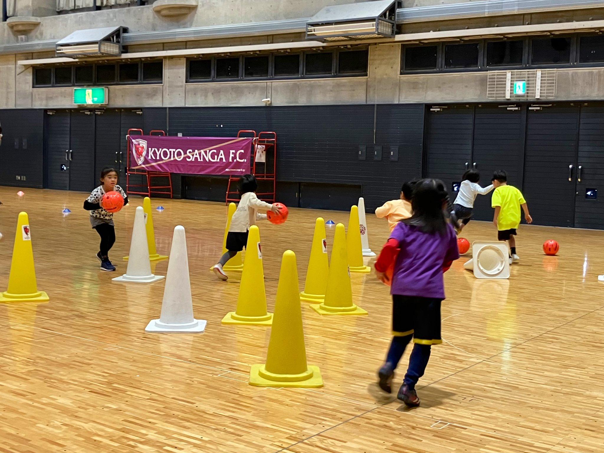 11月23日(土・祝)に向日市の市民体育館で市内在住の5歳児から小学2年生を対象として開催された、公益財団法人向日市スポーツ文化協会主催の「サッカークリニック」にサンガのスクールコーチが講師として参加しました。