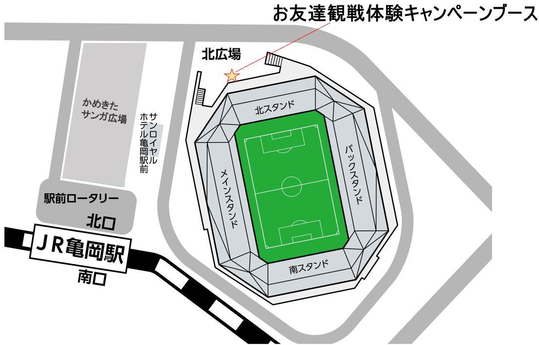 スタジアム北広場「お友達観戦体験キャンペーンブース」でグッズ&グルメクーポン券をお渡しいたします。