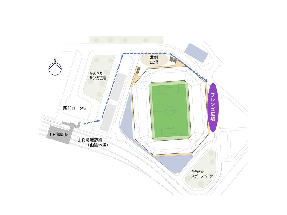 西京極総合陸上競技場でホームゲームを開催していた当時、ファン・サポーターの皆さまから愛され憩いの場となっていた『サンガフレンズスクエア』を継承したいとの想いから『フレンズ広場』と名付けました。