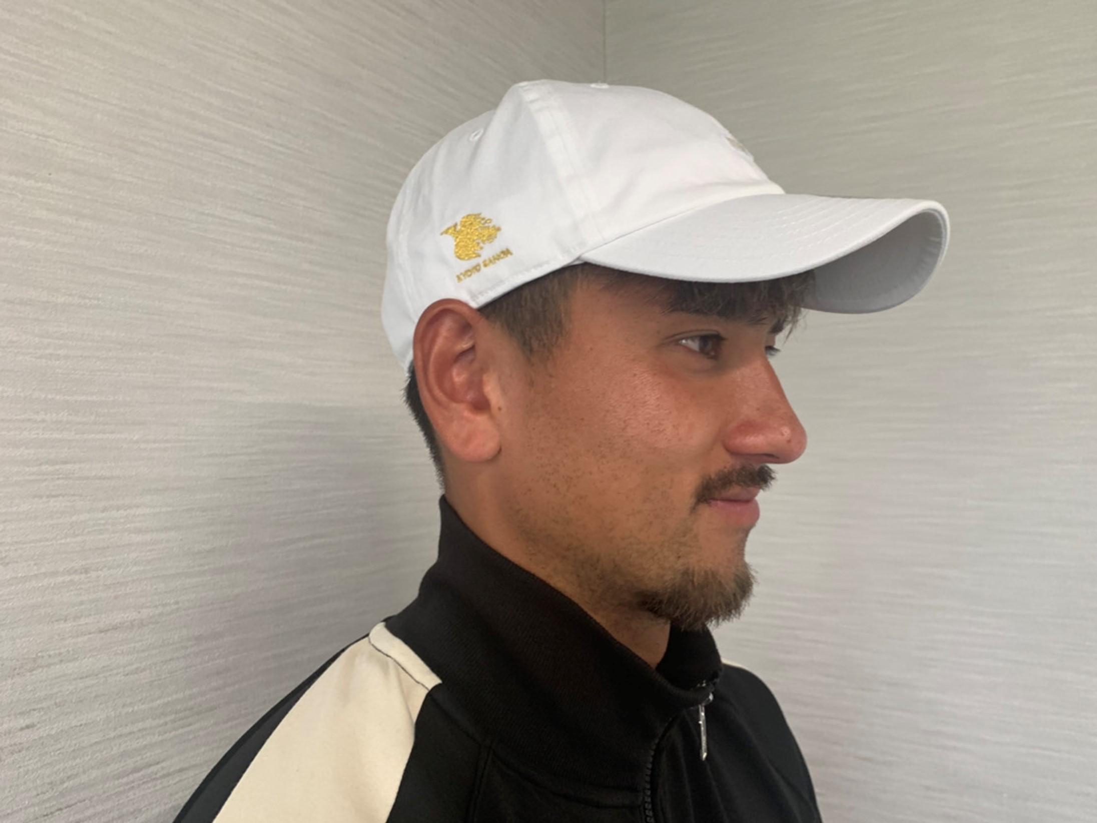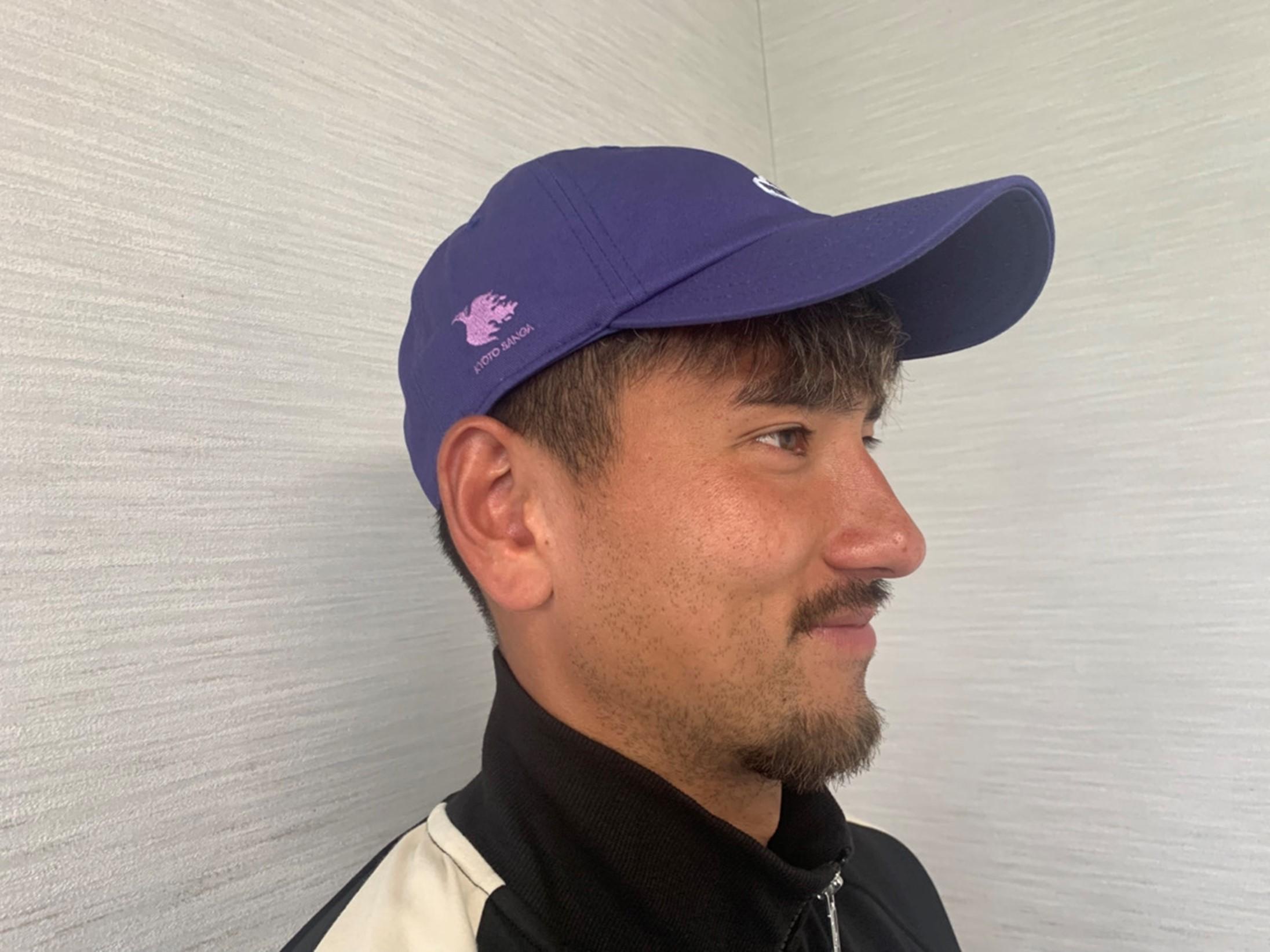 クールな印象の「パープル」と爽やかな「ホワイト」の2色展開。長めのツバと深めの被り着用感が特徴のキャップです。