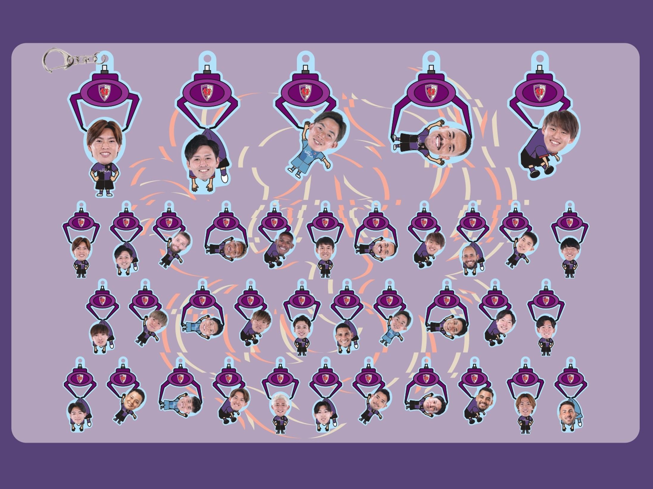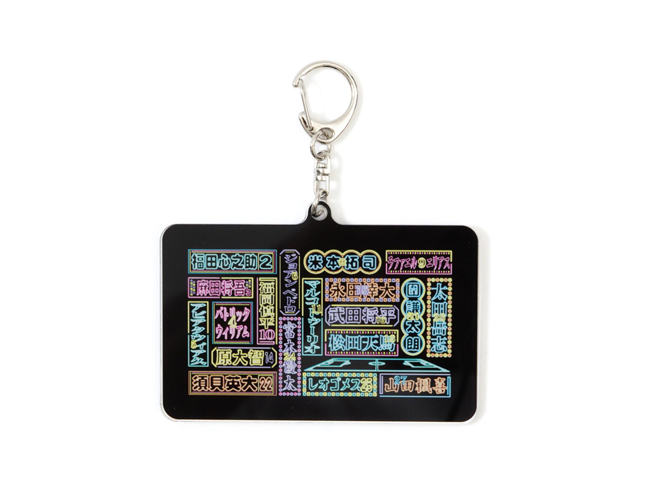エンブレムや選手名が夜に輝くネオンサインでデザインされています!選手ごとに異なるデザインをお楽しみください!鍵やバッグなど好きな場所につけて自分だけのサンガグッズに出来ます!