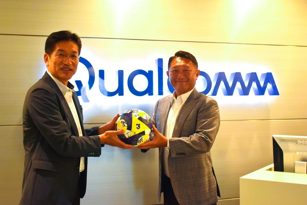 スマートフォンなど通信系の半導体メーカーで世界屈指の売上シェアを誇るQualcomm Technologies, Inc. (米国、以下 クアルコム)の日本法人であるクアルコムジャパンが今年9月、J1京都サンガF.C.のスポンサーになった。クアルコムはイングランド1部マンチェスター・ユナイテッドのユニフォームの胸スポンサーにもなったほどだが、なぜ日本法人が京都にー。都内で中山泰方社長に話をうかがうと、意外な事実と大きな野望が見えた。(聞き手・京都新聞社 大竹逸朗)