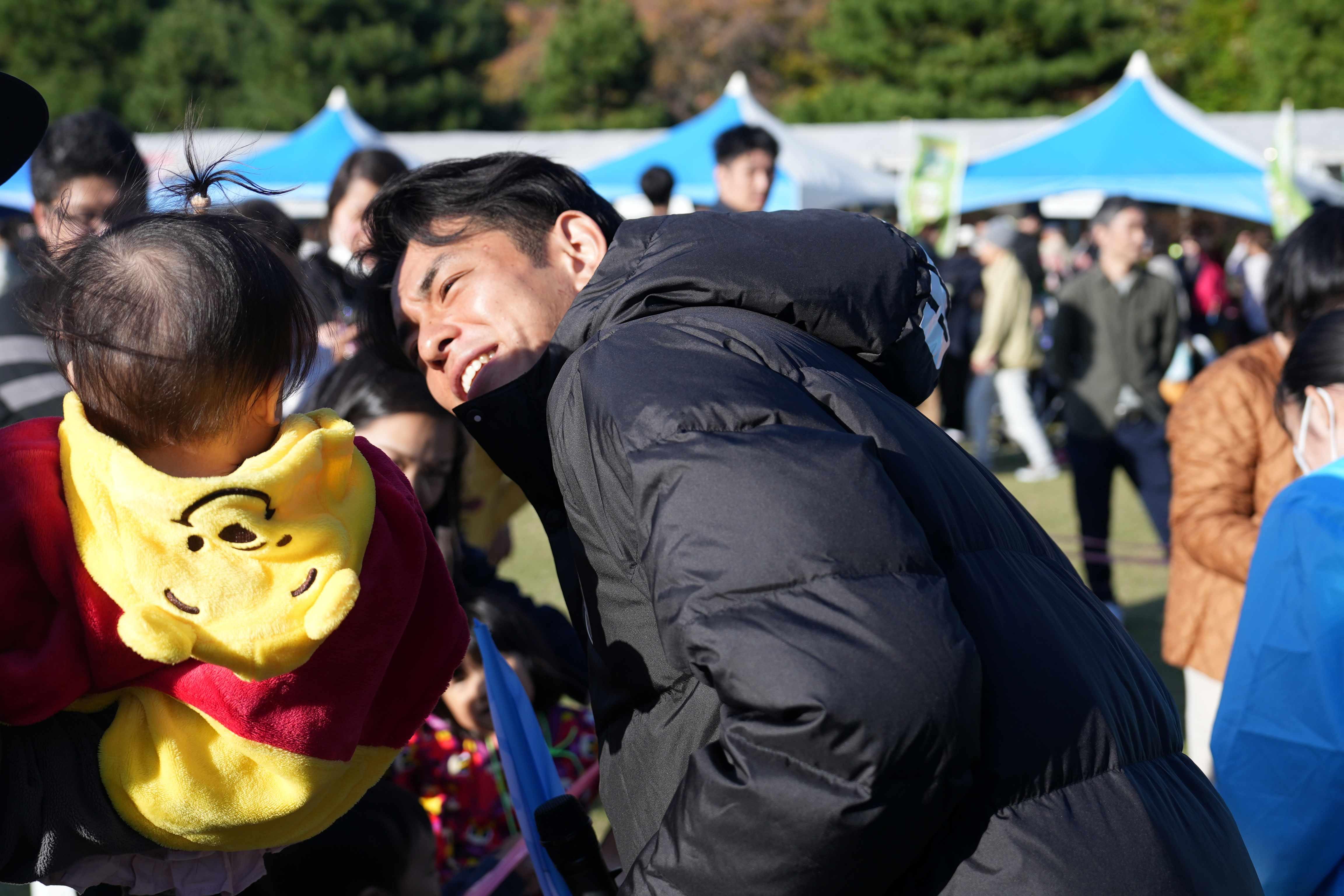11月3日(月・祝)京都府立植物園で開催された「WEラブ赤ちゃん・ちびっこ運動会」に山田楓喜選手が参加し、運動会に参加する子どもたちを応援したり、質問コーナーでは子どもたちからのたくさんの質問に答えたり、最後はキャタピラーレースに挑戦し、子どもたちと楽しい時間を過ごしました。