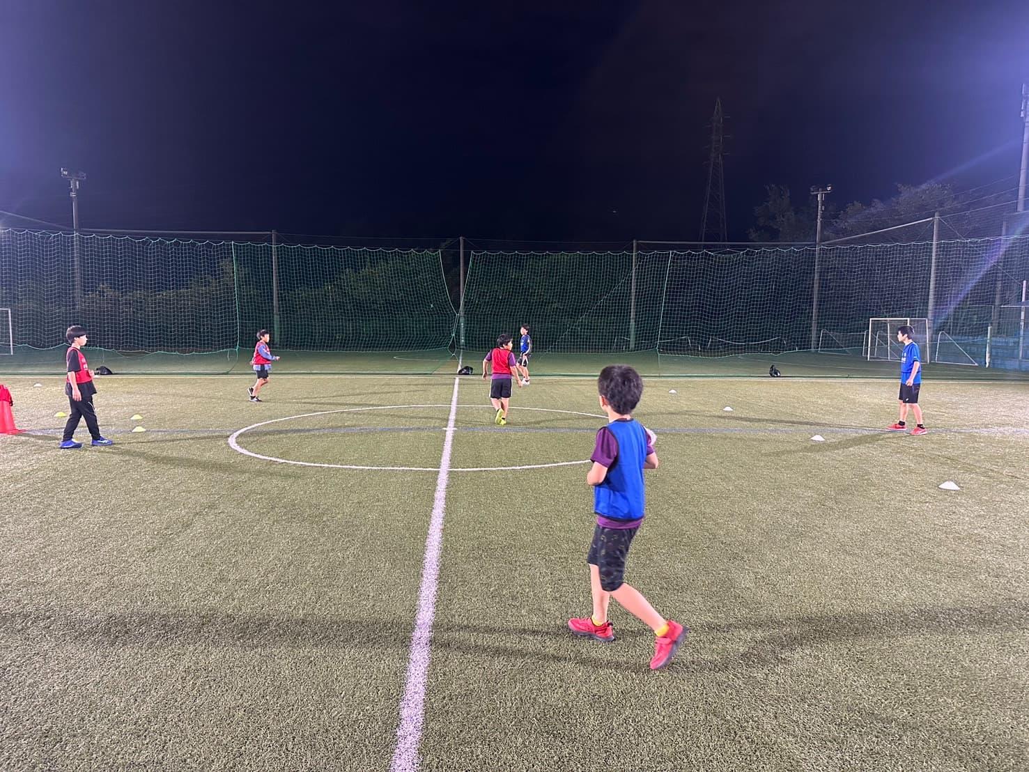 チーム対抗のスポーツ鬼ごっこを行い、身体操作のトレーニングを行いました。スポーツ鬼ごっこは、相手のコーンを取るスポーツで、スピードや相手をかわす方向転換能力と、相手の位置を把握することで認知や判断能力を組み合わせてトレーニングすることができます。