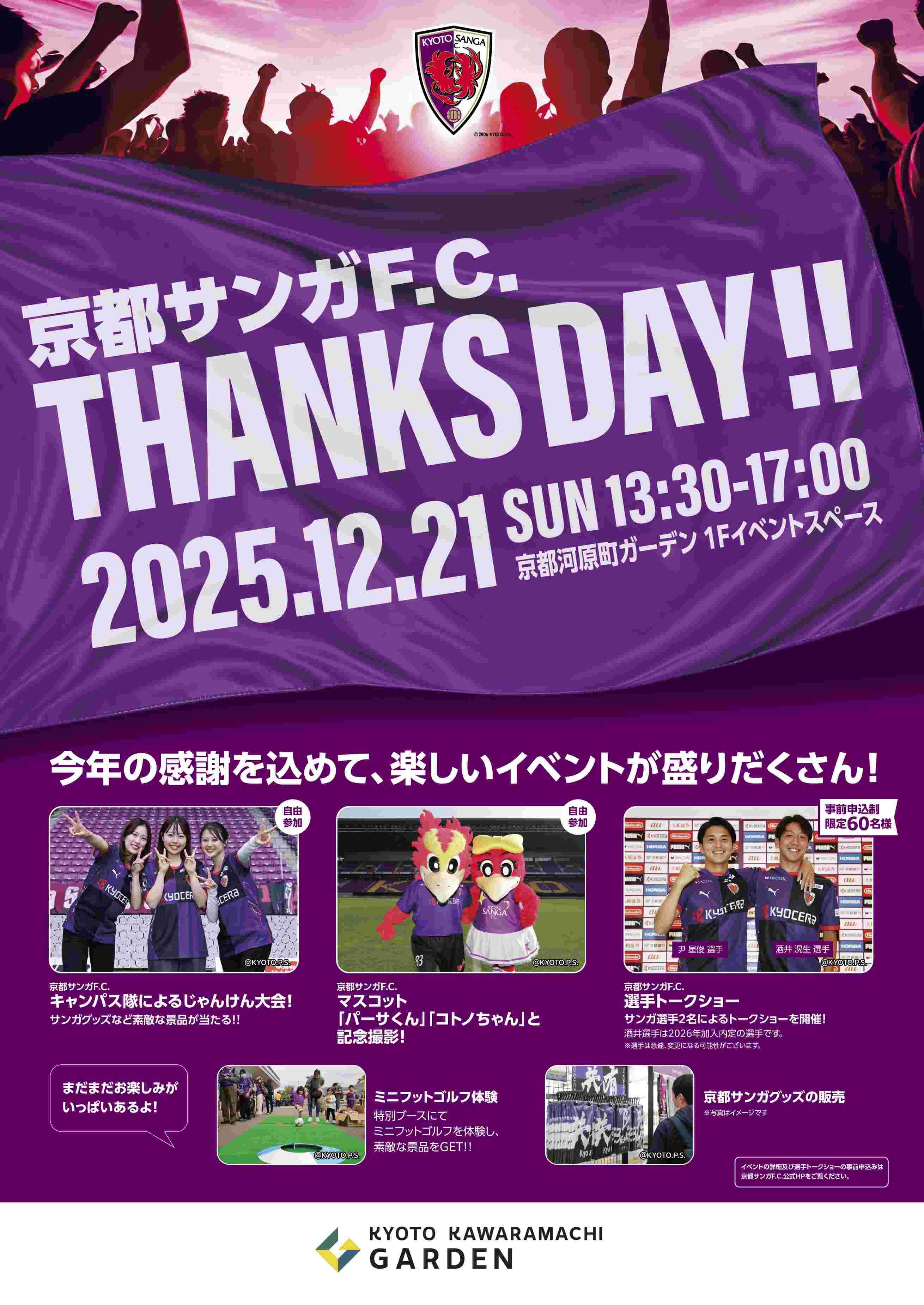 12月21日(日)にオフィシャルシルバースポンサーの京都河原町ガーデンで、『サンクスDAYS2025』を開催されます。