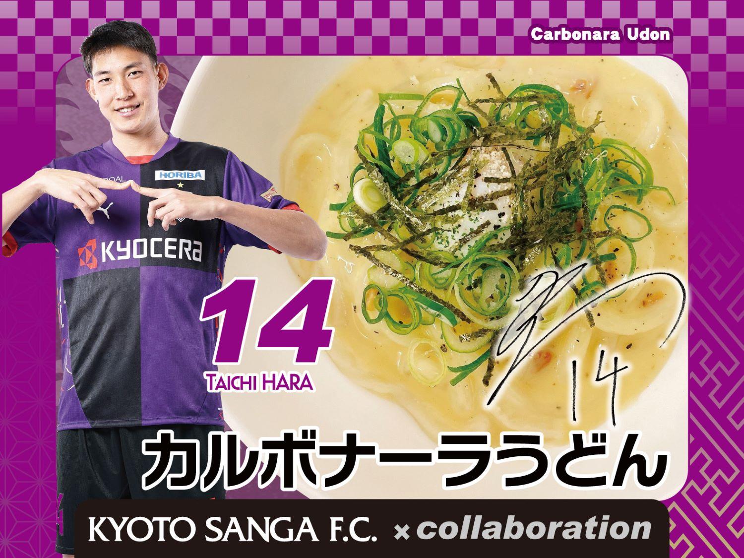 カルボナーラを得意料理とする原選手のコラボメニューは、ほんのり出汁が香る濃厚クリーミーなカルボナーラうどん♪