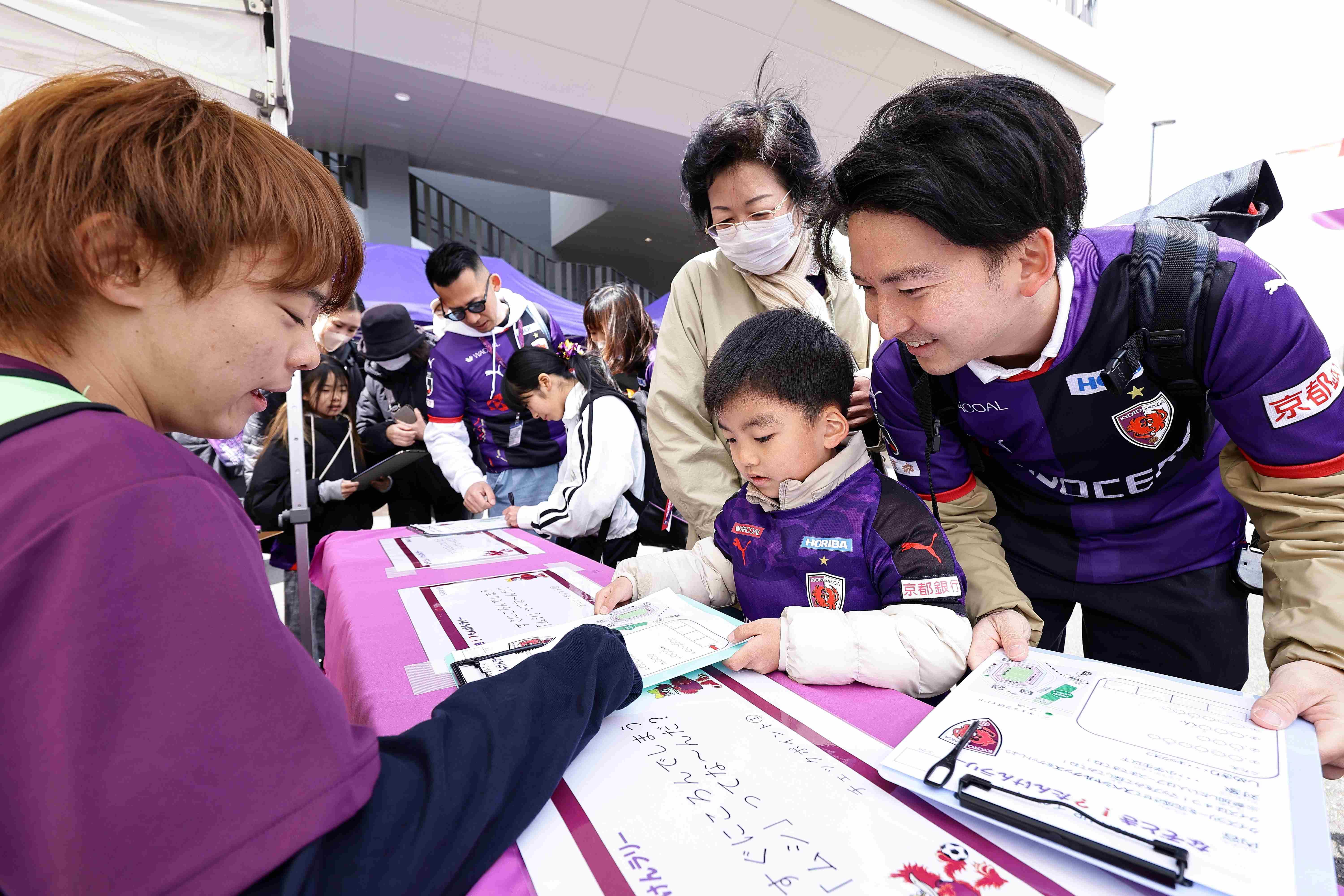 スタジアム周辺の4か所にあるチェックポイントでサンガクイズに挑戦してね。答えを集めてキーワードを完成させると、サンガグッズがあたる抽選会に参加できます!
