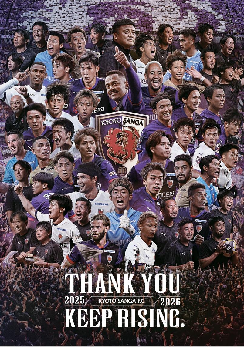 2025シーズン終了に伴うサンキューポスターは、まだ見ぬ景色を目指して戦う姿勢を表現した後半戦ポスターに、2025シーズンに在籍した選手たち、熱い応援でクラブを後押しし続けていただいたサポーターを配し、チーム・サポーターが一丸で戦ったシーズンを表現しています。