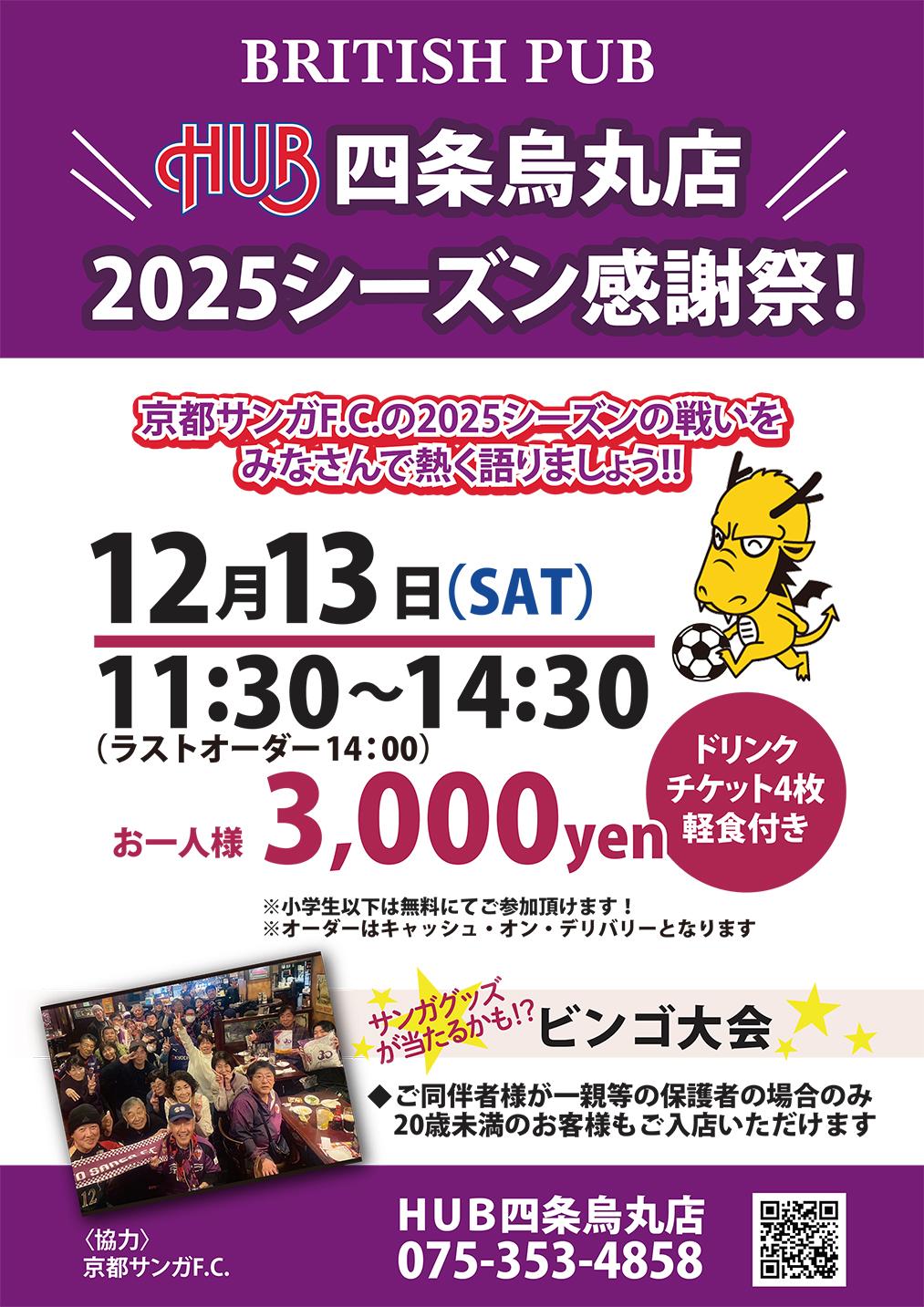 【12/13(土) HUB四条烏丸店】「2025シーズン感謝祭!」 開催のお知らせ