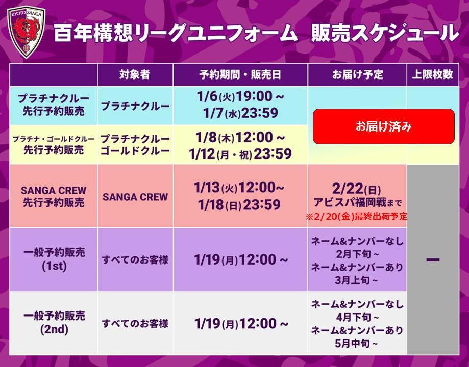 『明治安田J1百年構想リーグユニフォーム』の販売スケジュールにつきまして、以下の通りお知らせいたします。